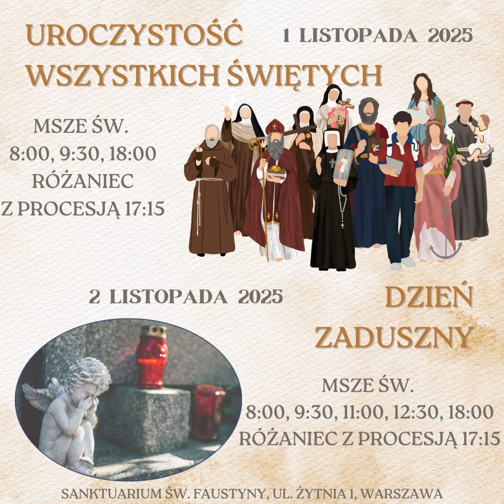 Na Różaniec wypominkowy i procesję zapraszamy w oba dni o godz. 17:15.